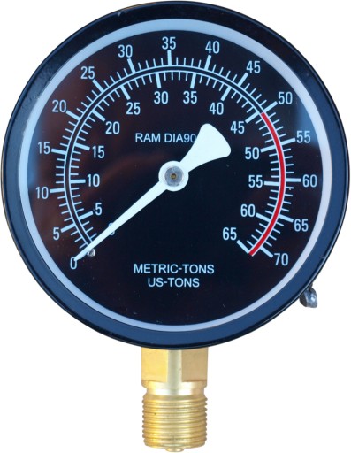 Pompując ręcznie, za pomocą dźwigni lub za pośrednictwem podłączonego powietrza ze sprężarki, o ciśnieniu około 8 barów (brak sprężarki w zestawie) można uzyskać taki sam efekt - nacisk do 50 ton - precyzyjnie kontrolowany poprzez manometr.