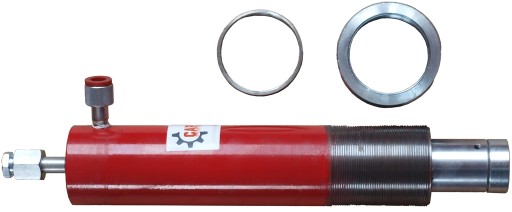 Siłownik posiada grubą i wytrzymałą nakrętkę ułatwiającą jego montaż np. we własnej konstrukcji prasie.