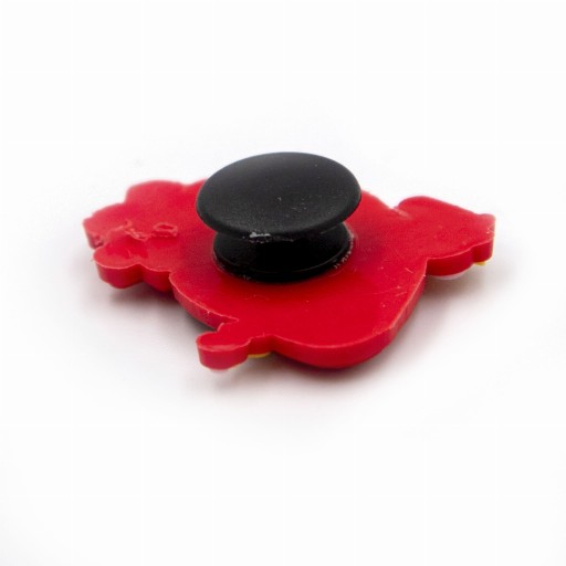 Przypinka jest bardzo łatwa w zaczepieniu. Wystarczy ją wepchnąc w otwór znajdujący się na klapku, niczym zapinanie kurtki na guzik. Od spodu znajduje sie plastikowy klips o wyoblonym kształcie, który zupełnie nie przekszkadza i jest nieodczuwalny przy chodzeniu