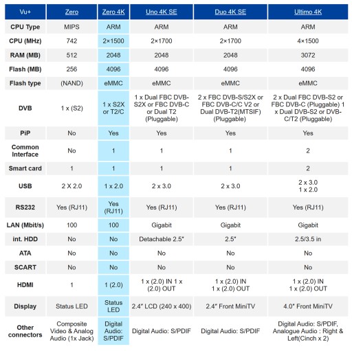 Vu+ ZERO 4K to przełomowy produkt na rynku, wspiera najnowsze formaty wideo, ale zarazem zostawia pełnię wolności użytkownikowi, dowolność ustawień, porządkowania listy kanałów, nagrywania (także HEVC/UHD) i korzystania z dowolnych kart i modułów CAM.
