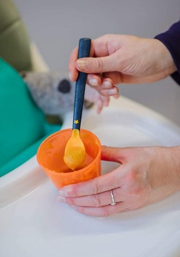 • Długi, antypoślizgowy uchwyt – świetne sprawdza się przy nabieraniu jedzenia ze słoików i pojemniczków, antypoślizgowy uchwyt ułatwia oparcie łyżeczki o miseczkę bez obawy, że wślizgnie się ona do potrawy.