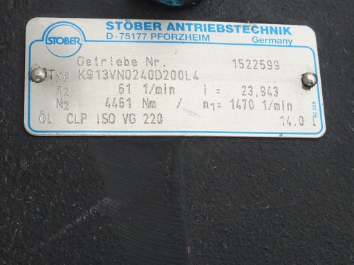 W tym ogłoszeniu mam zaoferowania używaną przekładnię , motoreduktor niemieckiej firmy STOBER 30kW o obrotach wyjściowych 61 obr/min . Oś wyjściowa 90mm, moment obrotowy 4461Nm. Motoreduktor ma hamulec elektromagnetyczny na 24VDC oraz enkoder. Waga 540kg. Motoreduktor jest w idealnym stanie technicznym, pracuje cicho i płynnie, tarcza hamulca nie wytarta (musiał mało pracować).