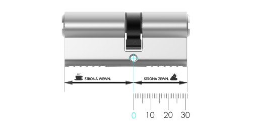 Wymiar wkładki A to regulowane 30mm-61mm od strony wewnętrznej mieszkania oraz nieregulowane 30mm od strony zewnętrznej (od strony klucza).