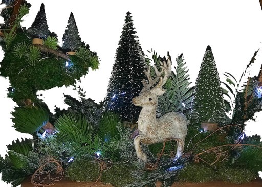 Zobacz prezentację pięknej świątecznej kompozycji Bożonarodzeniowej ręcznie wykonanej w dbałości o szczegóły . W nowoczesnych kolorach zieleni z dodatkiem naturalnego drewna całość podświetlona lampkami led, które wprowadzą Nas w bajkowy klimat Świąt Bożego Narodzenia. Naturalne materiały oraz idealnie dopasowane kolory w całości tworzą wyjątkowy stroik, który doskonale będzie się komponował w pomieszczeniach i stworzy wyjątkowy nastrój oraz wniesie odrobinę klimatu zaczarowanych Świąt Bożego Narodzenia. Stroik będzie wspaniałą dekoracją stołu wigilijnego, komody, parapetu lub kominka.