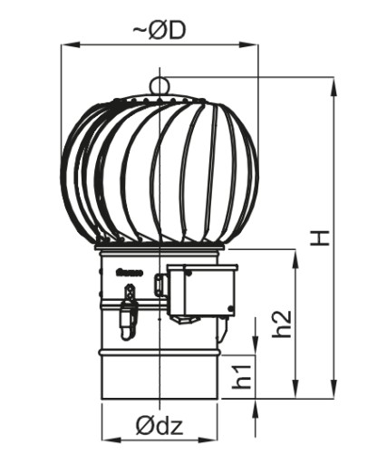 Obrotowa nasada kominowa TURBOWENT HYBRYDOWY fi150 jest urządzeniem dynamicznie wykorzystującym siłę wiatru do wspomagania ciągu kominowego, dodatkowo wyposażonym w elektronicznie komutowany silnik bezszczotkowy małej mocy do jego skutecznej stabilizacji. Montuje się ją na wylotach kominów wentylacyjnych o działaniu grawitacyjnym. Niezależnie od kierunku, siły i rodzaju wiatru, turbina nasady obraca się zawsze w jedną i tę samą stronę wytwarzając podciśnienie w króćcu dolotowym nasady, co w efekcie powoduje wzrost natężenia przepływu powietrza w przewodach.