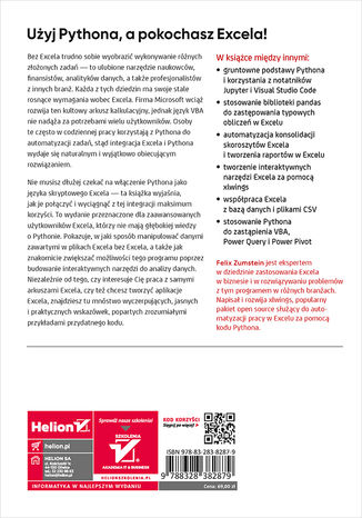Nie musisz dłużej czekać na włączenie Pythona jako języka skryptowego Excela - ta książka wyjaśnia, jak je połączyć i wyciągnąć z tej integracji maksimum korzyści. To wydanie przeznaczone dla zaawansowanych użytkowników Excela, którzy nie posiadają głębokiej wiedzy o Pythonie. Pokazuje, w jaki sposób manipulować danymi zawartymi w plikach Excela bez Excela, a także jak znakomicie zwiększać możliwości tego programu poprzez budowę interaktywnych narzędzi do analizy danych. Niezależnie od tego, czy interesuje Cię praca z samymi arkuszami Excela, czy też chcesz tworzyć aplikacje Excela, znajdziesz tu mnóstwo wyczerpujących, jasnych i praktycznych wskazówek, popartych zrozumiałymi przykładami przydatnego kodu.
