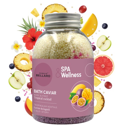 ✨ Perłowy kawior do kąpieli o smakowitym zapachu tropikalnego koktajlu owocowego – silnie zmiękcza i odżywia skórę
