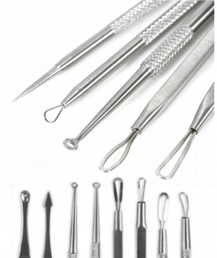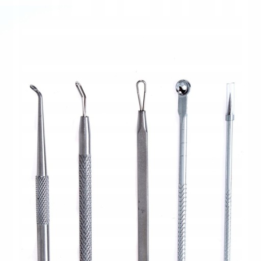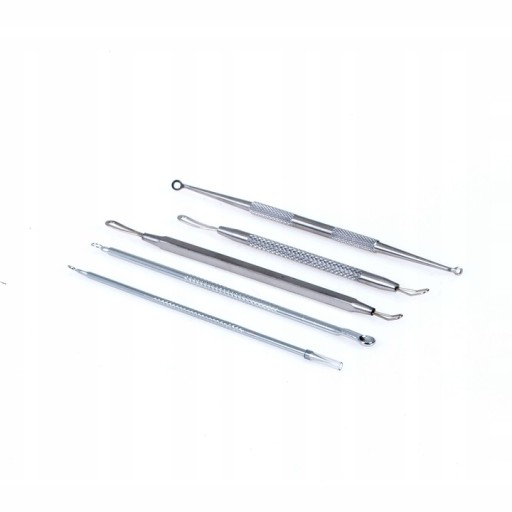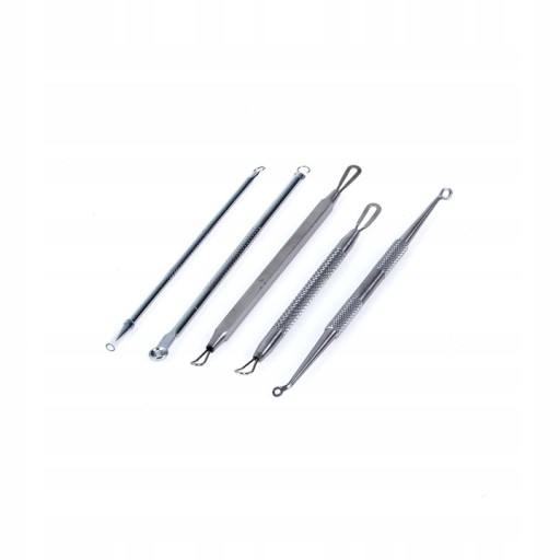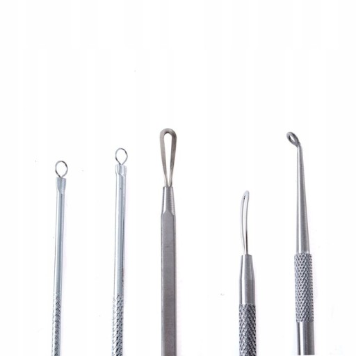 - Zestaw zawiera 5 łyżeczek do bezpiecznego usuwania zaskórników, wągrów i pryszczy