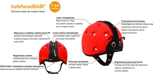 Kask ochronny do nauki chodzenia dla dzieci 7-24msc, obwód głowy 40-52cm SAFEHEAD