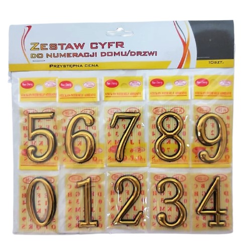10 X CYFERKI NUMERKI NA DRZWI PRZYLEPNE ZŁOTE 5CM