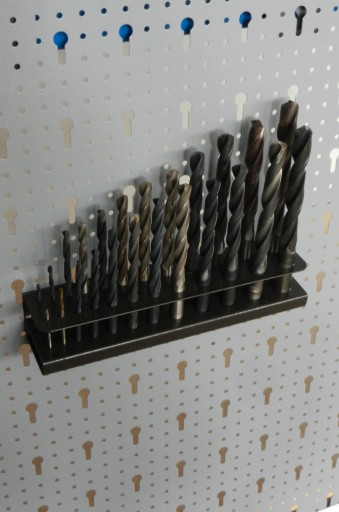 - 23 zawieszki, w tym: 14 sztuk blaszanych na klucze płaskie, młotki, pilniki, dłuta, wkrętarki, klucze oczkowe małe i duże, wiertła, 9 sztuk drucianych: 3 długie (110 mm, fi 4 mm), 3 średnie (90 mm, fi 3 mm), 3 krótkie (70 mm, fi 3 mm), 7 zawieszek do pojemników,