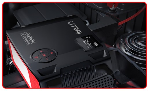 UTRAI Jstar 5 z to przenośny powerbank z funkcją rozruchu i wbudowanym kompresorem 150 PSI. Nie musisz mieć kabli rozruchowych, szukać dawcy prądu, wyciągasz UTRAI ze schowka, podpinasz do akumulatora, odpalasz i po sprawe, bez niczyjej pomocy.
