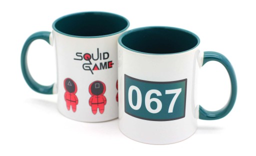 Wysokiej jakości kubek ceramiczny z trwałym odpornym na zmywanie nadrukiem dla miłośników oraz zapalonych fanów SQUID GAME.