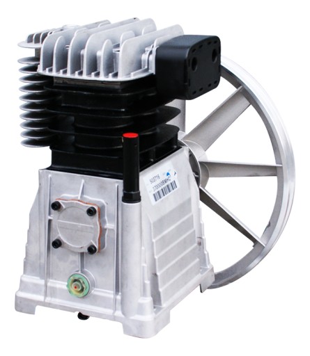 Dwucylindrowa sprężarka tłokowa smarowana olejem o jednym stopniu sprężania wyposażona w: