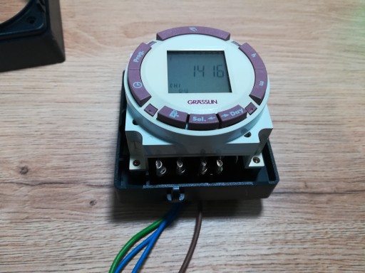 Przedmiotem mojej aukcji jest Zegar sterujący / programator czasowy Grasslin Tactic 571 w komplecie z adapterem/obudową w kolorze czarnym