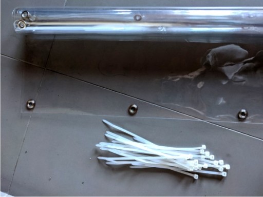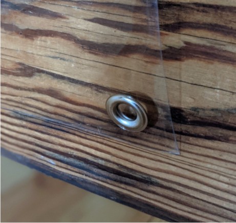 Na wszystkich krawędziach osłony zabezpieczającej zamontowane są mosiężne oczka, służące do montażu.