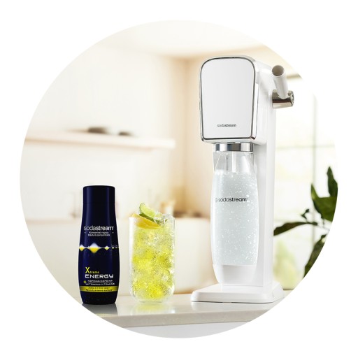 Żaden problem! Wypróbuj syrop SodaStream Energy i łatwo uzupełnij braki energii. Po co kupować niezdrowe energetyki? Twój saturator do gazowania wody szybko wyczaruje zdrowszą wersję napoju energetycznego... bez wychodzenia z domu.