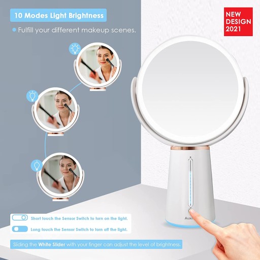 Powiększenie 1X/10X: Lusterko do makijażu ma 2 strony: jedna jest normalnym lustrem, które zapewnia funkcję wyświetlania rzeczywistego 1:1, a druga z powiększeniem 10x