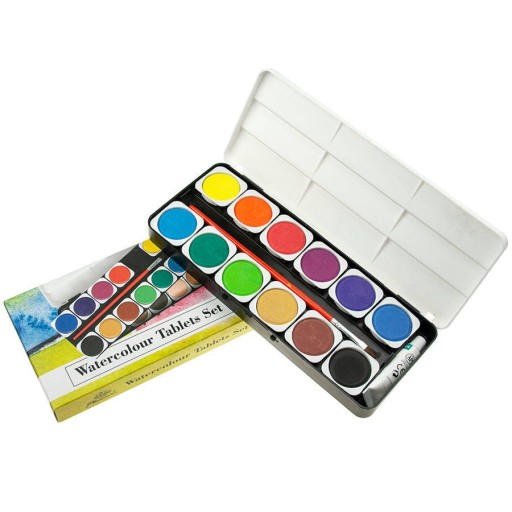 Kolory pastylek: 201 Flesh Tint, 214 Brilliant Yellow, 215 Lemon Yellow Hue, 217 Indian Yellow, 301 Orange Yellow, 307 Magenta, 314 Brilliant Red, 315 Crimson, 458 Deep Blue, 430 Violet, 443 Ultramarine, 425 Cerulean Blue Hue, 423 Cobalt Blue Hue, 449 Green Blue, 509 Green Light, 504 Brilliant Green, 563 Leaf Green, 569 Olive Green, 676 Yellow Ochre, 684 Burnt Sienna, 686 Umber, 691 Yellow Umber, 793 Lamp Black, 798 Grey.
