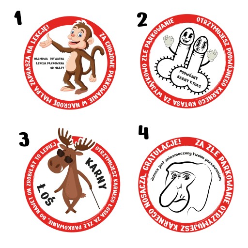 KARNE NAKLEJKI ZA ZŁE PARKOWANIE 4 RÓŻNE WZORY