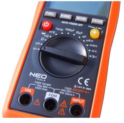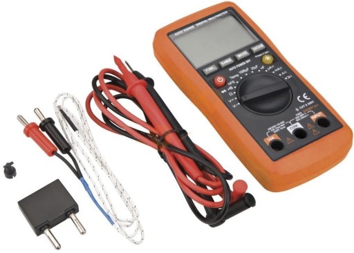 Miernik elektroniczny uniwersalny służy do dokonania pomiarów napięcia prądu stałego i przemiennego, natężenia prądu przemiennego i stałego, oporności elektrycznej, sprawdzenia ciągłości przewodów, hFE (tester tranzystorów), pojemności, pomiaru diody oraz temperatury. Posiada automatyczne zakresy pomiarowe oraz pamięć ostatnich pomiarów. Korpus wykonany z wysokiej jakości tworzywa sztucznego. Podświetlany wyświetlacz LCD umożliwia pracę przy słabym oświetleniu. Dodatkowe cęgi ułatwiają dokonanie pomiaru. Nylonowy pokrowiec ułatwia przechowywanie i transport. Zgodność z europejskimi standardami bezpieczeństwa zapewnia certyfikat CE.