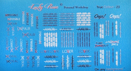 Seria TRUE COLOR-23 to kolorowa kalkomania wodna z białą podstawą na cienkiej przezroczystej folii.