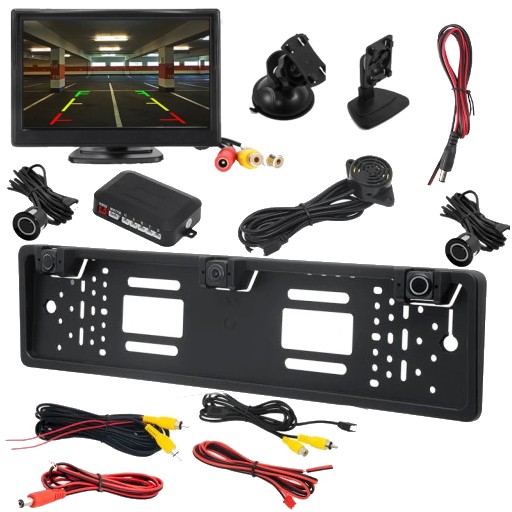 ZESTAW KAMERA COFANIA Z CZUJNIKAMI PARKOWANIA W RAMCE TABLICY + MONITOR 5 CALI Z KABLEM 6 METRÓW