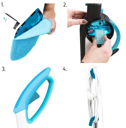 ✔ urządzenie wyposażone jest w trzy wielorazowe nakładki do mycia podłóg.