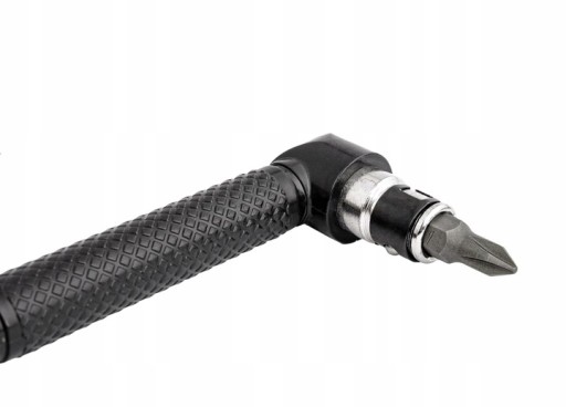 - Wkrętak wyposażony został w zatrzaski, które umożliwiają stabilne mocowanie bitów 1/4 cala pod kątem 90°.