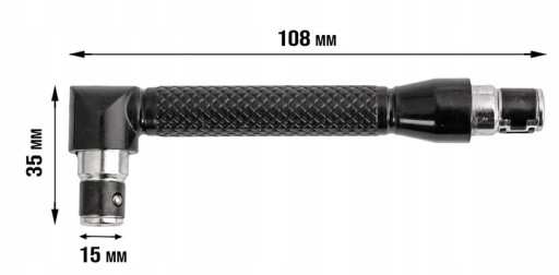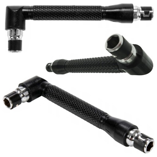 - DWUSTRONNE GNIAZDO – w zależności od potrzeb możemy go użyć w dwóch konfiguracjach, z krótszą lub dłuższą końcówką pod kątem 90 °. Pozwoli to na wygodne wkręcenie w trudno dostępnych miejscach.