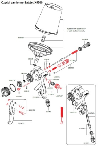 Część dedykowana do pistoletów lakierniczych Sata: 100 B, 1000 B 1000 H, 1000 K, 4000 B, X 5500, 5000 B. ( RP i HVLP).