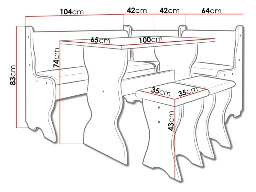 - Narożnik kuchenny: długość: 146 cm, szerokość: 106 cm, wysokość: 83 cm,