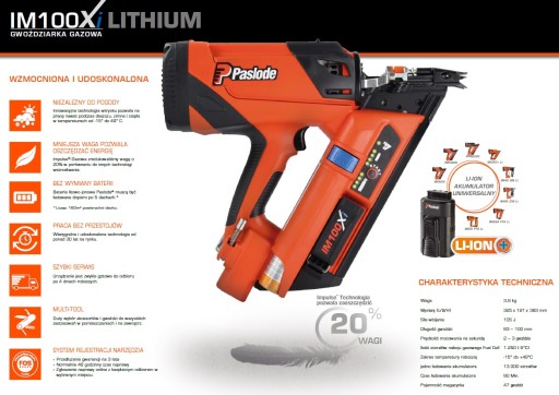 Gwoździarka gazowa PASLODE (obsługuje długość gwoździe do 90mm).