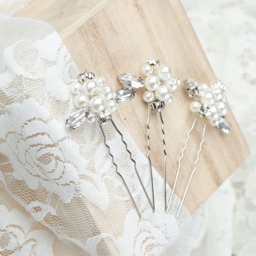 Stroik, kokówka w eleganckim wystawnym stylu, wykonana jest ze stopu jubilerskiego antyalergicznego, ozdobiona perełkami i kryształami. Precyzyjny szlif kryształu nadaje ozdobie biżuteryjny, efektowny charakter i subtelny blask.