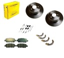 KOMPLET TARCZ HAMULCOWYCH RAZEM Z KLOCKAMI HAMULCOWYMI I SZCZĘKI HAMULCA RĘCZNEGO NA TYŁ FIRMY MIKODA/HART/DENCKERMANN