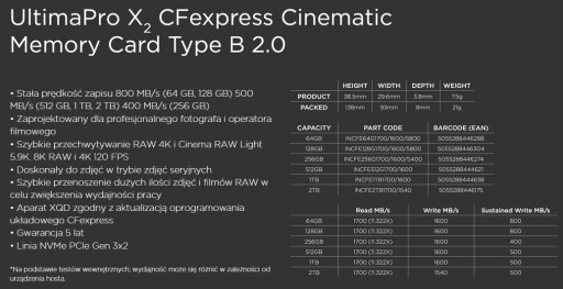 Karty przeznaczone są dla profesjonalnych fotografów i operatorów.