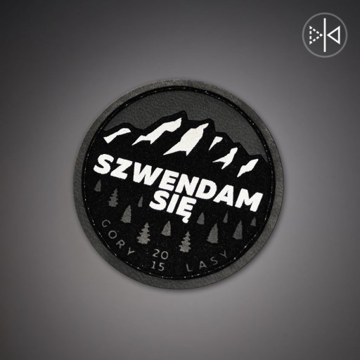 Naszywka z ekoskóry w szarym kolorze w kształcie okręgu z napisem Szewndam się i wizerunkiem gór. Emblemat posiada odblaskowy napis i grafikę, dzięki czemu zwiększa Twoją widoczność i bezpieczeństwo po zmroku. Dodatkowo stanowi dizajnerski dodatek. Został wyposażony w jednostronny rzep, dzięki któremu w szybki i prosty sposób zaczepisz go np.: na plecak, nerkę, czapkę lub inny rodzaj odzieży z odpowiednim do tego panelem z rzepu miękkiego (tzw. pętelka). Wymiary naszywki: 5 x 5 cm. Folia odblaskowa posiada certyfikat EN 471 i zapewnia bardzo dobre odbicie światła.