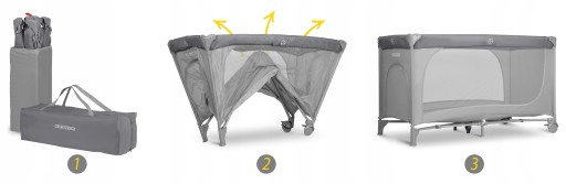 Dzięki praktycznemu pokrowcowi, łóżeczko zajmuje niewiele miejsca w przechowywaniu, a jego transport jest znacznie łatwiejszy.