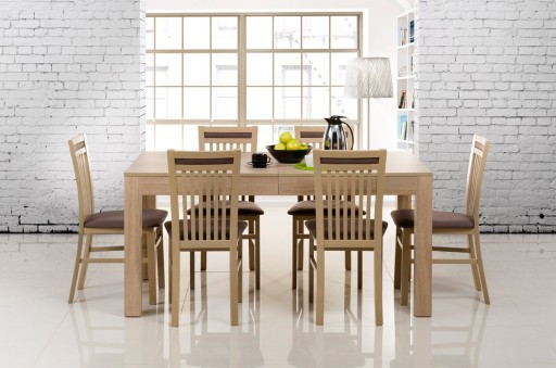 Stół WENUS MINI to propozycja dla osób poszukujących łatwej i szybkiej zmiany wielkości powierzchni użytkowej swojej jadalni. Trzy wkładki chowane pod blatem, pozwalają na poszerzenie długości stołu ze 140cm. na 180,220 oraz 260cm. Ergonomiczna wysokość 76cm. zapewnia komfort użytkowania. Stabilności stołu zapewniają 4 masywne nogi które po rozłożeniu przekształcają się w 8 podpór. Mebel wykonany jest z płyty laminowanej a nogi z MDF.