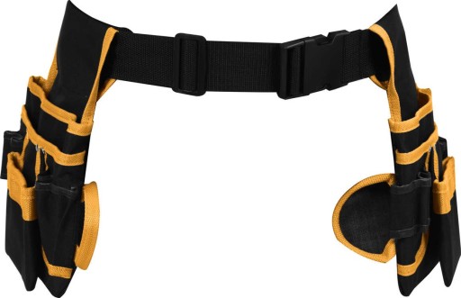 Pas narzędziowy z dwiema przesuwanymi sakwami: po trzy kieszenie i dodatkowe przegródki każda.
