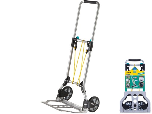 Kółka i podstawa składane są jednym ruchem. Dzięki takiej możliwości wózek TS 600 mieści się w każdym samochodzie i jest pod ręką podczas zakupów.