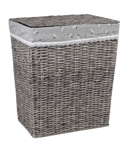 SZARY KOSZ NA PRANIE Z TECHNORATTANU Z MATERIAŁEM 40x30x47h cm