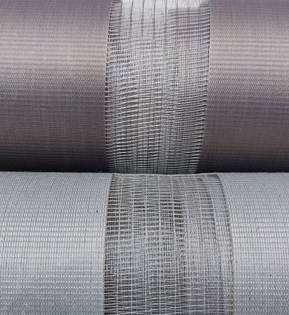 Szaro-beżowa tkanina ma delikatny połysk. Transparentne pasy pozwolą na regulowanie przepuszczalności światła.