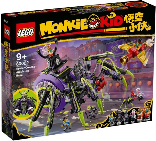 - Zestaw LEGO® Monkie Kid™ (80022) zawiera bazę arachnoidów Spider Queen, która jest mechem i mobilnym centrum dowodzenia. To doskonała inspiracja dla dzieci, które będą wymyślać niesamowite opowieści o walce.