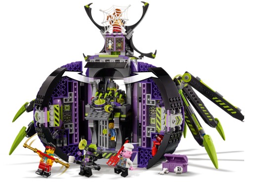 - W komplecie sześć minifigurek — Spider Queen, Syntax, Monkie Kid, Pigsy, Monkey King oraz mieszkaniec miasta — a także broń i akcesoria, w tym Złoty Kostur zmieniający się w latający pojazd Monkie Kida.