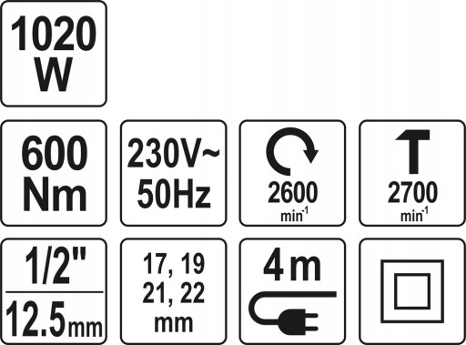 ELEKTRYCZNY KLUCZ UDAROWY 1/2" 1020W/600Nm