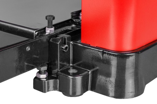 urządzenie wyposażone jest w dwa stoły robocze (podający i odbierający) z dodatkowymi wałkami, które ułatwiają podtrzymywanie i przesuwanie obrabianego materiału. Dzięki temu praca jest bardziej stabilna i bezpieczna.