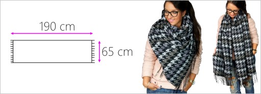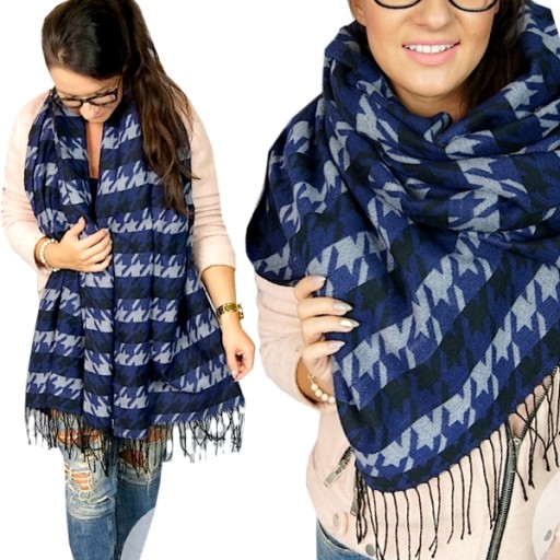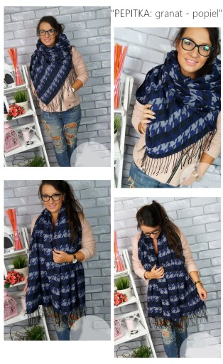 Nawet najbardziej wyrafinowany look nabiera rumieńców, dopiero w towarzystwie odpowiednio dobranych dodatków. Szal bardzo ładnie wykonany z miękkiego, ciepłego materiału w najmodniejszą pepitkę. Zakończony stylowymi frędzlami. Idealny na chłodne jesienne jak i mroźne zimowe dni.