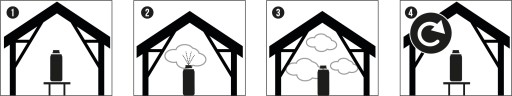 - Środek będzie stale uwalniany aż do opróżnienia opakowania i zamgławienia całego pomieszczenia.