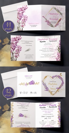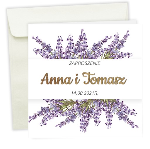 Zaproszenia ślubne LAWENDA koperta PAPIER PERŁOWY